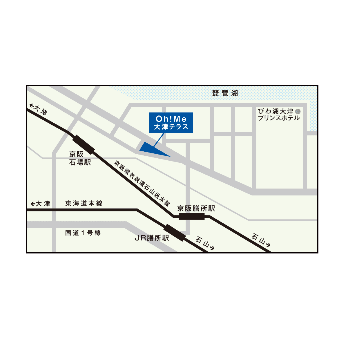 「Oh!Me大津テラス」はJRびわ湖線 「膳所」駅に近く、交通利便性に優れた地域密着型の商業施設です。スーパーマーケットを中心に、映画館や飲食店など、多種多様なテナントが入り、地域の皆様に日々ご利用いただいております。