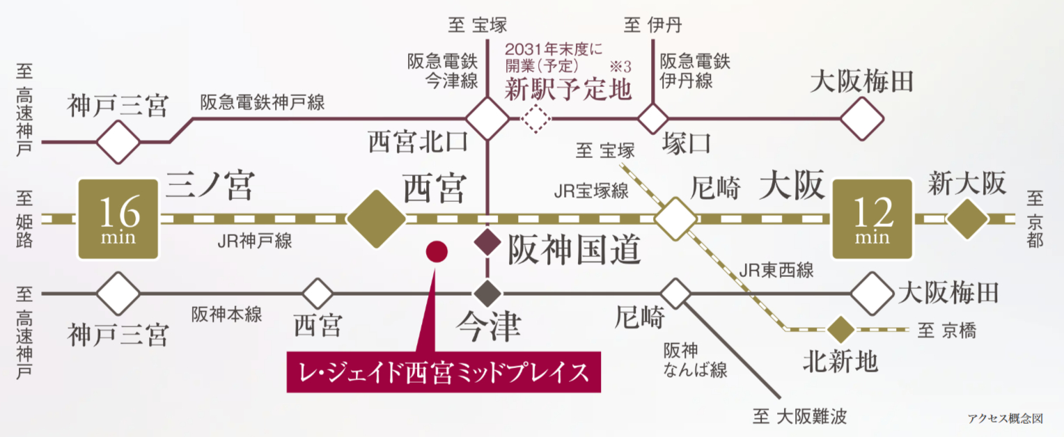 | 交通 | JR神戸線「西宮」駅徒歩6分、阪急今津線「阪神国道」駅徒歩4分 、阪神本線「今津」駅徒歩10分 |