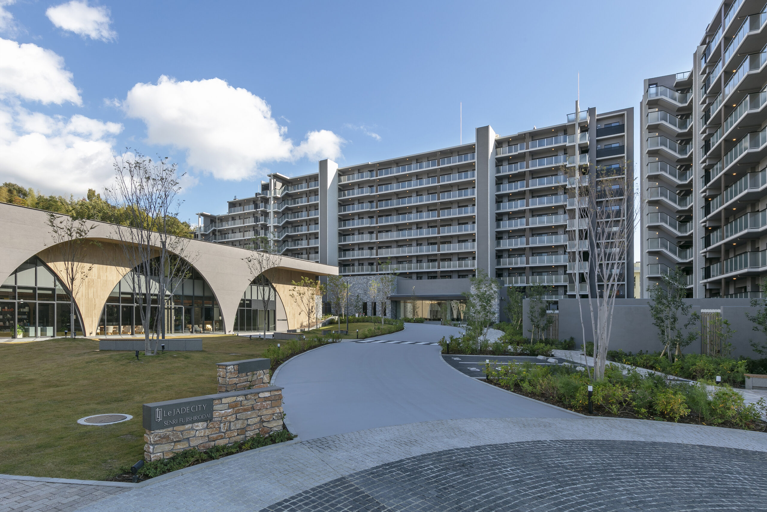 当社は当街区内に、「レ・ジェイドシティ千里藤白台サウスレジデンス/イーストレジデンス」(2024年8月竣工、総戸数244戸)及び「レ・ジェイドシティ千里藤白台センターレジデンス/ウェストレジデンス」(2025年12月下旬竣工予定、総戸数398戸)を開発し、その管理業務は当社子会社の株式会社エスコンリビングサービスが受託しています。
